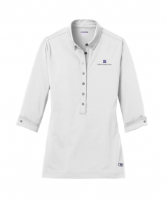 Break away from the ordinary in this button-down style polo that features cuffed 3/4 sleeves.